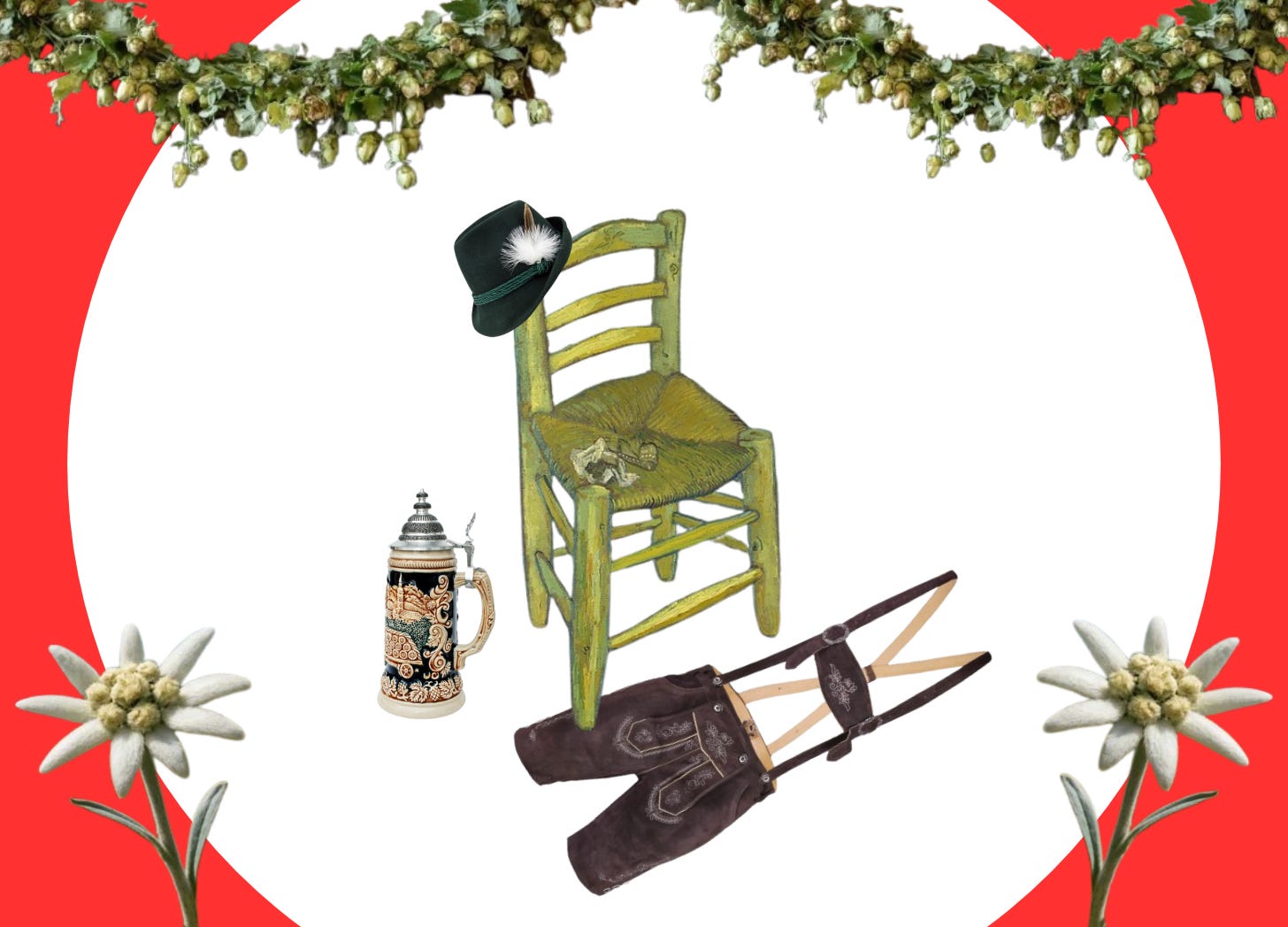A whole group of people dressed in horrendous lederhosen walks onto the patio. “Ayyyyy, more of us! More of us!” Harry hollers at the group, waving them over. They have terribly perfect American smiles, and they happily come bounding over to us like a posse of golden retrievers looking to be pet. One of the men, a very Aryan-looking blonde-haired type, slides next to Harry. They are immediately in cahoots; smiles, whispers, mischievous giggles. I just know that they will later have disappointing sex, of which I will have to hear many details about. Next to me is a woman in a very low-cut dirndl. Her hair is blonde brunette, done up in two long braids that look like ropes connected to large church bells. She has loudly slid into me so that her legs ‘accidentally’ bump against my things. She looks like if Julie Andrews had grown up in Georgia and voted for Marjorie Taylor Greene. ‘Uh oh’, I think to myself. But after eight beers, that thought turned into me publicly asking: “Do you know how to yodel?”